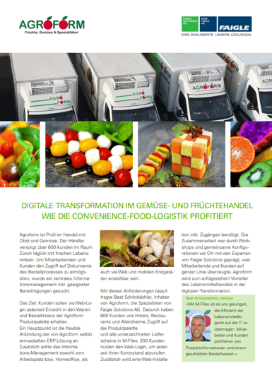 Die stetig neuen Fortschritte des digitalen Wandels lassen sich auch im Gemüsehandel bestens integrieren und ermöglichen laufende Verbesserungen in allen Prozessstufen. So waren wir auch 2018 bestrebt ein neues Informationsmanagement zu implementieren, welches Mitarbeitenden und Kunden den Zugriff auf diverse Dokumente des Bestellprozesses ermöglicht.